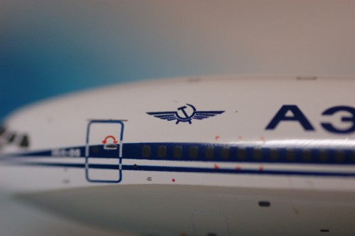 ちなみに、ロシア語の転写としては「イリューシン」より「イリユーシン」の方が適切だったりします。どうでも良かったね。 ロシア航空は、2006年にロシア航空とプルコヴォ航空が合併して生まれたロシア連邦の航空会社。大統領や首相なんかが外遊する時に使われているので、政府専用機を主に運行しているイメエジが強いですが、通常航路も多く運行している普通の航空会社です。今はアエロフロート・ロシア航空の子会社になっています。 旧プルコヴォ航空のИл-86。(Schuco-Schabakの1/600) Ил-62は1960年代に導入されたソ連邦の長距離旅客機で、1995年までゴルブーノフ記念カザーニ航空生産公団(КАПО)で製造されていました。初期型はエンジンがショボくて燃費が宜しくないなどの難点を抱えていましたが、1970年代にこれらの問題を克服した改良型Ил-62Мが開発され、世界中に輸出されました。その後長い間、東側諸国の長距離輸送を支えていくことになります。 ロシア航空は2011年現在、6機のИл-62Мを保有していますが、これらは全て政府専用機として運行されています。ロシア航空が運航している政府専用機用の機体の垂直尾翼には、通常の三色旗(ベーシク)ではなく、ロシア連邦の国章が描かれています(但しИл-96-300に関しては、民用機同様三色旗が描かれています)。 ロシアの象徴である双頭の鷲。ロシア語ではдвуглавый орёл(ドヴグラーヴィイ・オリョール)と言いますの。ちなみに、このモデルの尾翼とエンジンはプラスティック製です。くれぐれもぽっきりやってしまわぬよう。 尚、Ил-62Мに限らず、ロシア航空が現在運用しているロシア製航空機は殆ど全てが政府専用機で、民間の商業路線に投入されているロシア機はАн-148のみです。(アントーノウは一応ウクライナの企業ですが、ロシア航空が運行しているАн-148は、ロシア連邦のヴォローネシュ株式航空機製造会社〈ВАСО〉でライセンス生産されている機材)。国産機が競争の激しい民間路線で淘汰されていく中、せめて国家の顔たる政府専用機くらいはロシア製で固めたい!ということなのでしょうか。 Д-30エンジンが4本も付いてくるお得感。初期型ではНК-8エンジンが使われていました。こいつらが黒煙を吐きつつ迫ってくる様子には、名状しがたい禍々しさを感じます。 ちなみにこれの後継機がみんな大好きИл-86となりますが、こちらはどちらかと言うとダメな子だったので、Ил-62も長く運用され続けました。 これくらいの大きさ。ロシア航空はサンクト・ペテルブルクに拠点があるので、「レニングラート」と較べてみました。 おまけ動画 ロシア航空はこんなに凄い航空会社ですよーという動画。冒頭に出てくるТу-154Мは、前身であるプルコヴォ航空との混合塗装になっていますね。 モニノ(モスクヴァ郊外の町・野外航空博物館がある)の野原に着陸する無印Ил-62。こういう非整地にも強いのが、多くのソヴィエト航空機の特徴でした。 ロシア航空のИл-62М。マルタと言うことはマルタ国際空港なのでしょうか。 PR ねんがんの いーるはちじゅうろくを てにいれたぞ! Gemini Jetsの1/400スケール・Ил-86・アエロフロート・ソヴィエト航空仕様(СССР-86015)です。さすが1/400だけあって、すごく…大きいです。1/200とか1/72とかに較べるとそうでもないとか言わない。 こうやって並べるとあんまり大きく見えないですね。 Ил-86ってなあに? Ил-86は、嘗てのС・В・イリユーシン記念設計局(現在の公開株式会社『С・В・イリユーシン航空複合体』)が1970年代後半に開発した、ソ連邦初のワイドボディ・ジェット旅客機(所謂"аэробус"〈アエローブス〉)だよ!ソヴィエト航空界の期待を集めた(多分)Ил-86だけど、当時のソ連邦のターボファンエンジンは大変ショボかったので、燃費が悪く、図体の割に航続距離が短い中途半端な飛行機が出来上がってしまったよ!結局100機程度が製造されたのみで、今ではほぼ全機が退役しているよжаль! これだけだとなんだか碌でもない飛行機みたいですが(まあ割りとその通りなのだけれど)、そのスペックの微妙さも含めて何故か非常に愛らしいのです。大型旅客機としては欠陥が多かったИл-86ですが、何しろ東側初のワイドボディ機という記念碑的な航空機ですし、また航空大国ソ連邦で製造された最後の本格的な旅客機(実際にはИл-96がありますが、こちらが導入されたのは連邦の解体以降なので、実質的にИл-86が最後と言えます)という意味も大きいです。ソヴィエト航空機萌えとしては、捨て置くわけにはいきません。ちなみにポーランドのPZLがひっそりと開発・製造にかかわっているので、純ソヴィエト製と言えるかと言うと微妙だったりするのは内緒です。 他のスケールのИл-86たち。左から1/400、1/500、1/600。 お馴染みのアエロフロート・ロゴ。細かいなさすがGemini Jetsこまかい。外観は同時代のエアバス機やボーイング機なんかとあまり変わらない筈のИл-86に、やたらソヴィエトっぽいイメエジを覚えてしまう