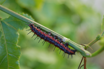 しかしながら、本当に何もないと淋しいので、取り敢えず帰省中の大晦日に撮った写真でも晒すとします。 その日は実家の近くのでかい書店のあるショッピングモールにいたのですが、ふと通路脇のマラクジャー(時計草)の植え込に目をやると虫食い葉がいっぱい。虫食い葉があるという事は、即ちそれを食ったやつが近くにいるよという事です。こういうのを見ると、節足動物スキーの血が疼きます。そんなわけで葉っぱの裏を探してみると いましたー♪ 恐らくタテハチョウ科ドクチョウ属の幼虫だと思います。食草がアレなので、食べたらみょんな味がするというやつですねー(食べたことないけど) 前から思っていたんですが、こういうタテハチョウの幼虫みたいなのはなんと呼べばよいのでしょうねー。毛虫…ではないし、かと言って芋虫というのとも違う気がします。棘虫…? 見渡すと、同じやつがうじゃうじゃいます。鱗翅目好きにはたまらない光景ですねーw でも、これがもしイラガだとかドクガだったら不愉快以外の何ものでもないわけで、つくづく勝手なものですね。成虫も見てみたいけれど、次の週には日本に戻らなければならないのでちょっと無理かもしれません。というか無理でしたorz 残念! ちなみに大きさは300~400mmくらい。何齢かはよく判らないですが、終齢かそれに近い感じだと思います。惜しかったなあ。 撮影中は夢中で気が付きませんでしたが、冷静に考えてみると、通路の真ん中でうずくまりながら1眼レフでマラクジャーの茂みを激写している様子は完全に怪しい人でしたね。通報されなくてホント良かったです。 |